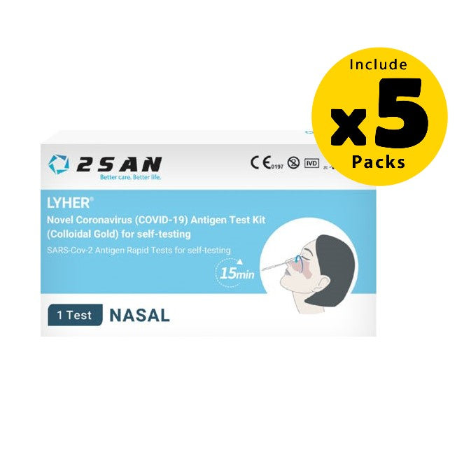2SAN LYHER Covid 19 Rapid Antigen Test Nasal (Nasal Swab) 5 x 1 Pack