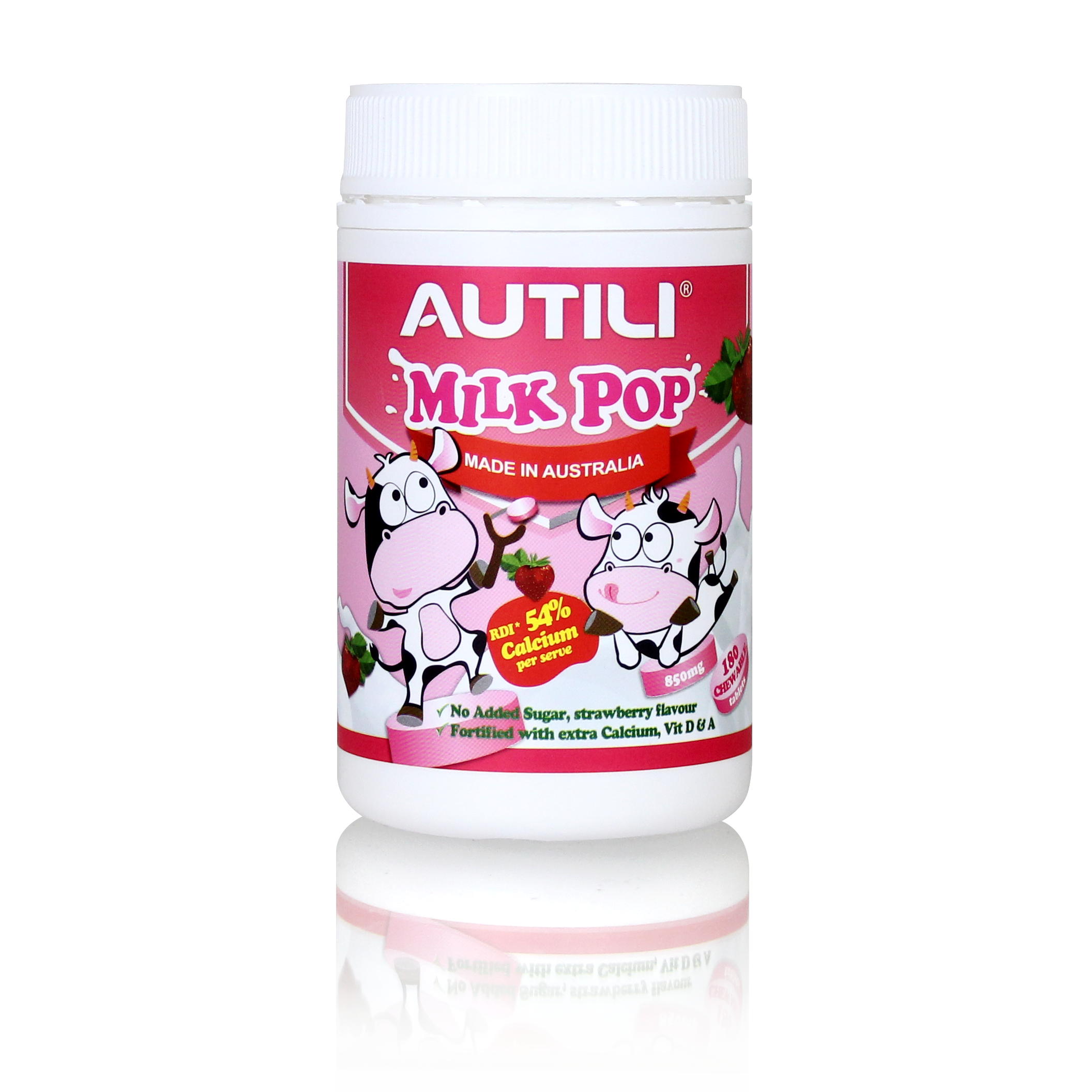 AUTILI Milk Pop Strawberry 850mg 180 Chewable Tablets
