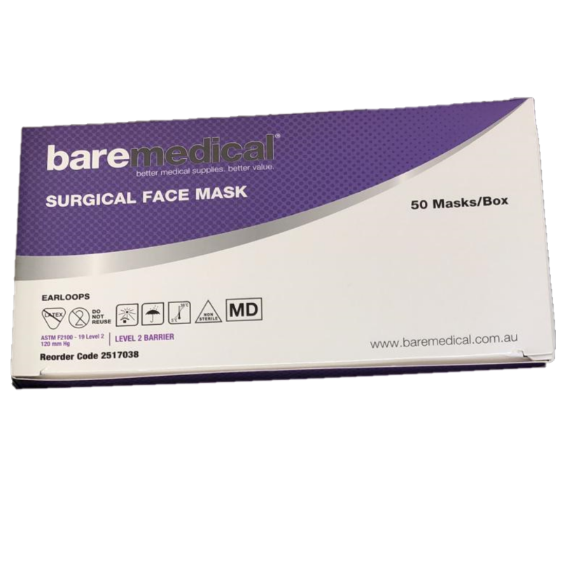 Face Mask - Baremedical Surgical Disposable Face Masks Level 2 Barrier Protection 50 PCs Box