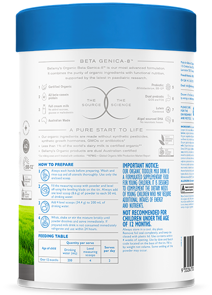 Bellamy’s Organic Beta Genica-8 Step 3 Toddler Milk Drink 12 Months - 3 Years 800g