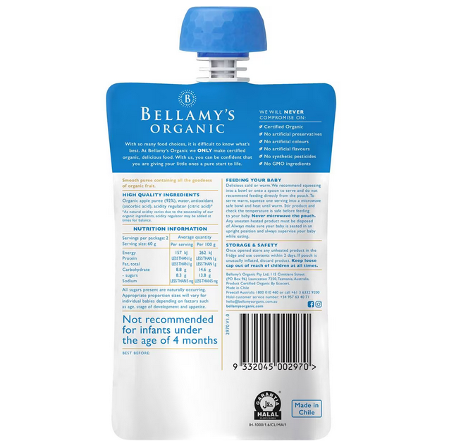 Bellamy's Organic Apple Puree 4+ Months 120g