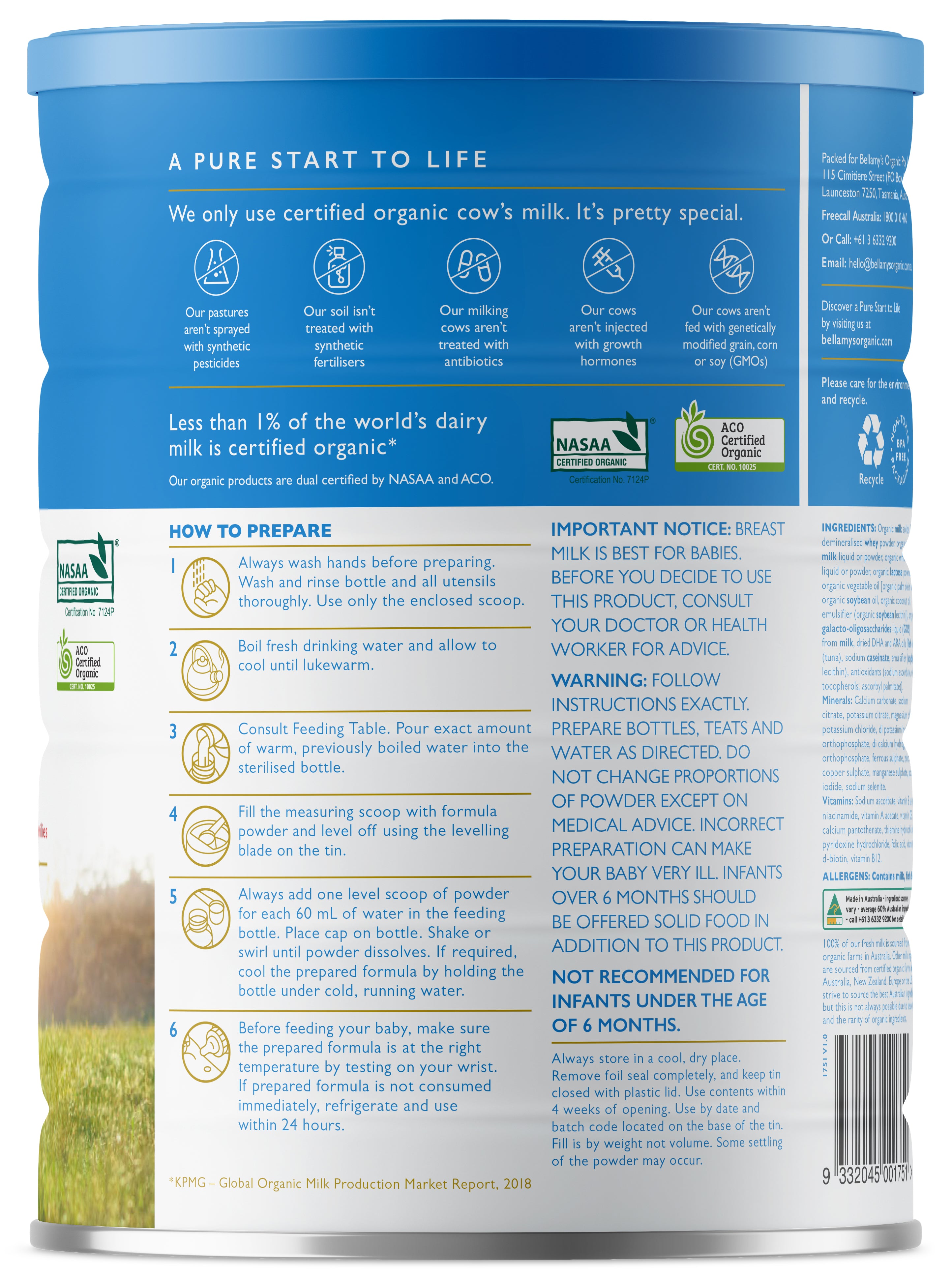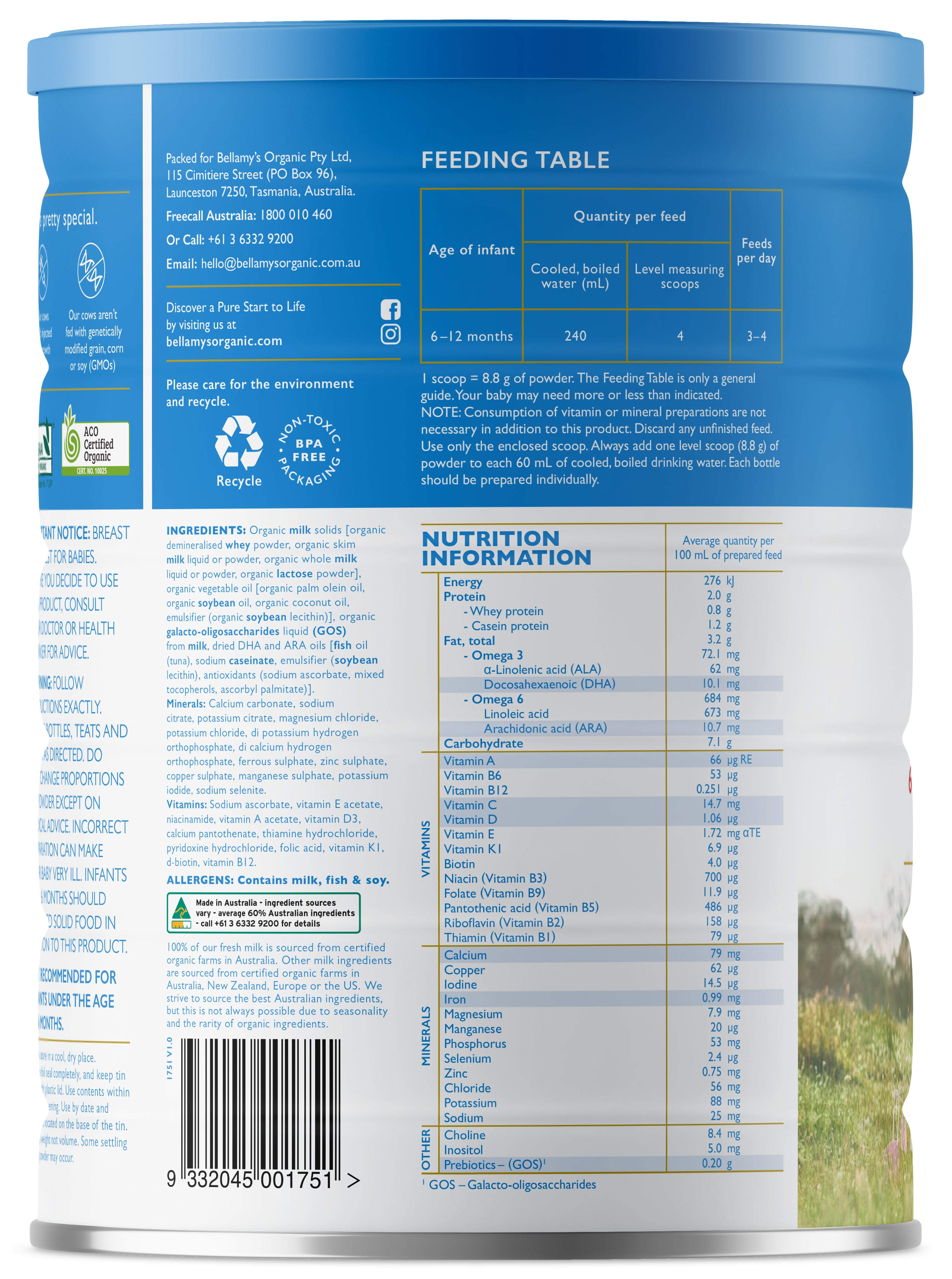 Bellamy's Organic Step 2 Follow On Formula 6 - 12 Months 900g