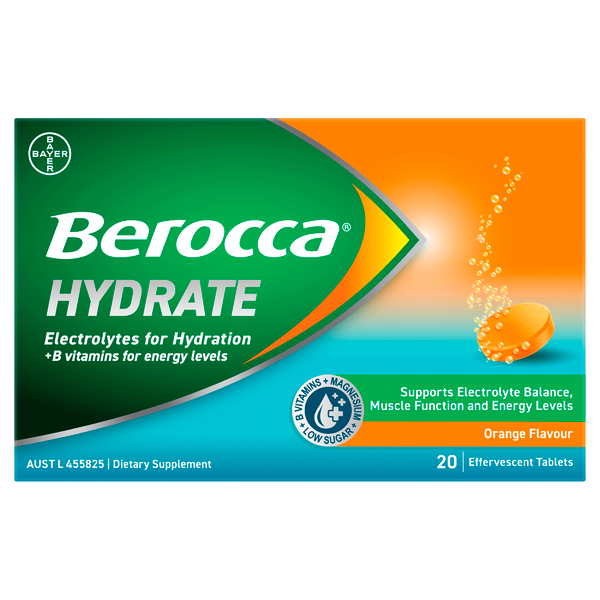 Berocca Hydrate Electrolytes + B Vitamins Orange Effervescent 20 Tablets