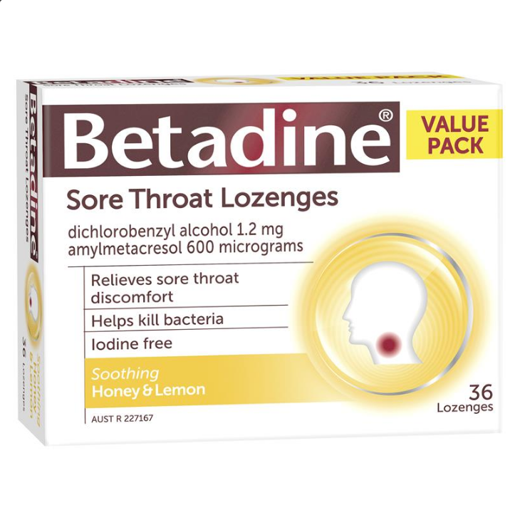 Betadine Sore Throat Lozenges Soothing Honey & Lemon Flavour 36 Pack