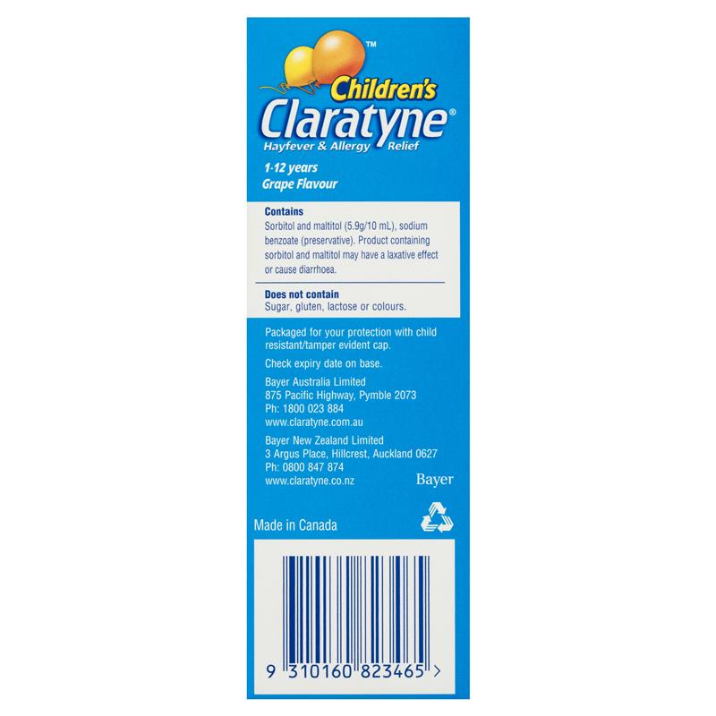Claratyne Children's Hayfever & Allergy Relief Antihistamine Grape Flavoured Syrup 120ml (Limit ONE per Order)