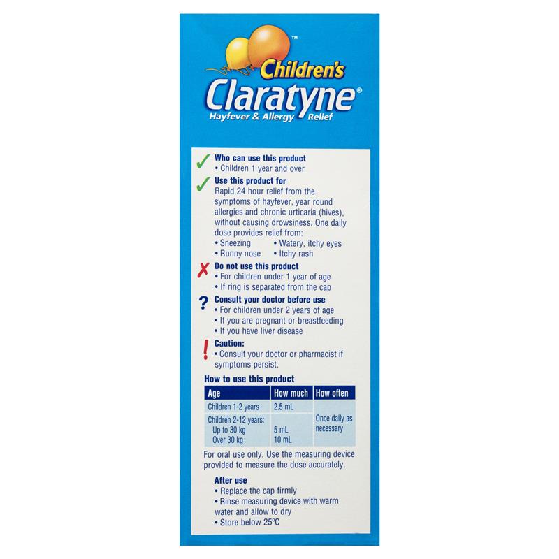 Claratyne Children's Hayfever & Allergy Relief Antihistamine Peach Flavoured Syrup 150mL (Limit ONE per Order)