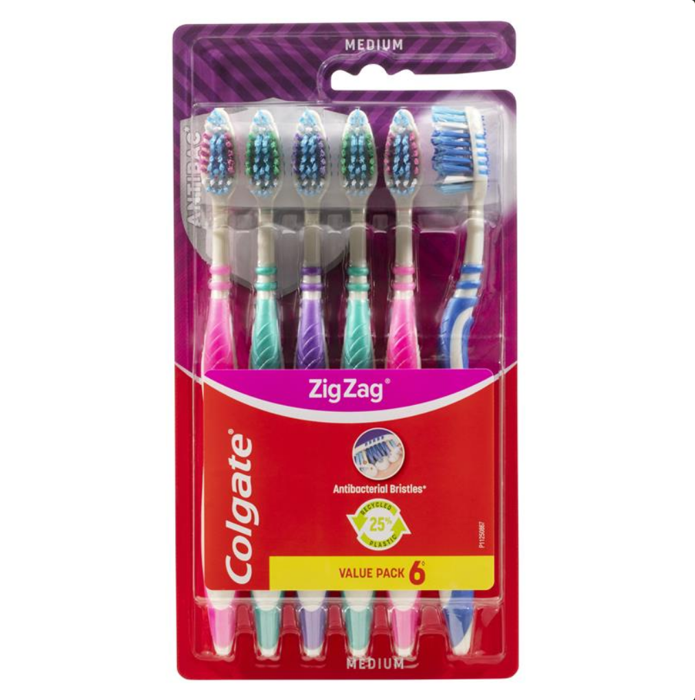 Colgate Zig Zag Deep Interdental Clean Toothbrush Medium Value 6 Pack
