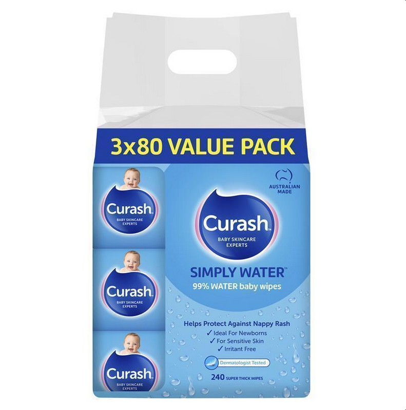 Curash Babycare Simply Water Wipes 3 x 80