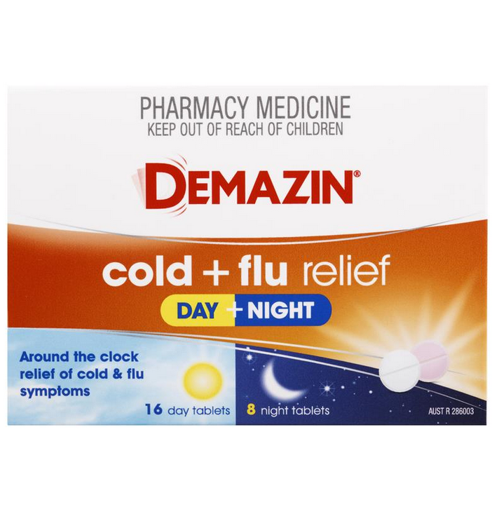 Demazin Cold & Flu Relief Day + Night 24 Tablets (Limit ONE per Order)