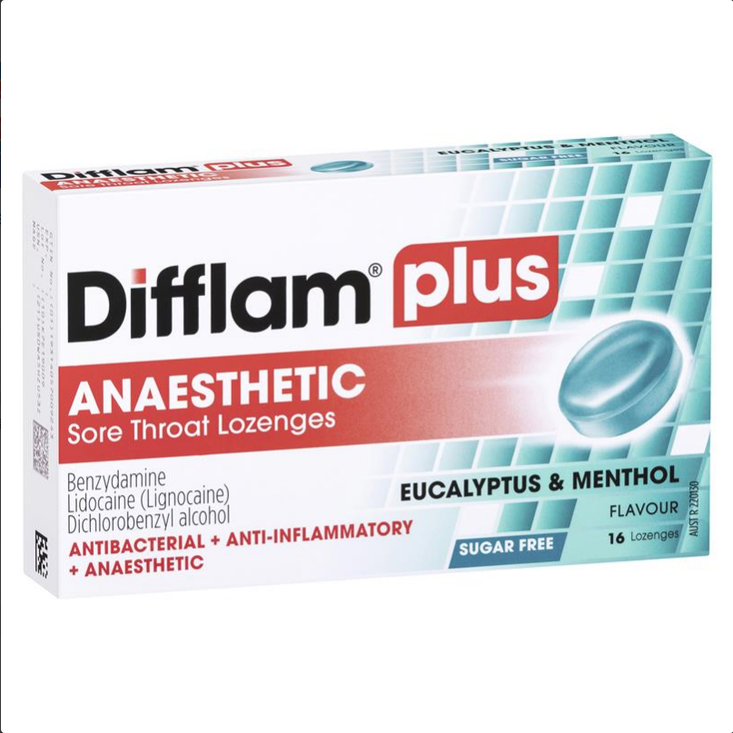 Difflam Plus Anaesthetic Sore Throat Lozenges Eucalyptus & Menthol Flavour 16