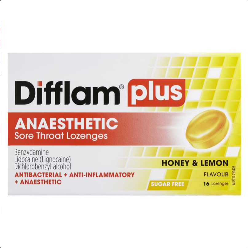 Difflam Plus Anaesthetic Sore Throat Lozenges Honey & Lemon Flavour 16