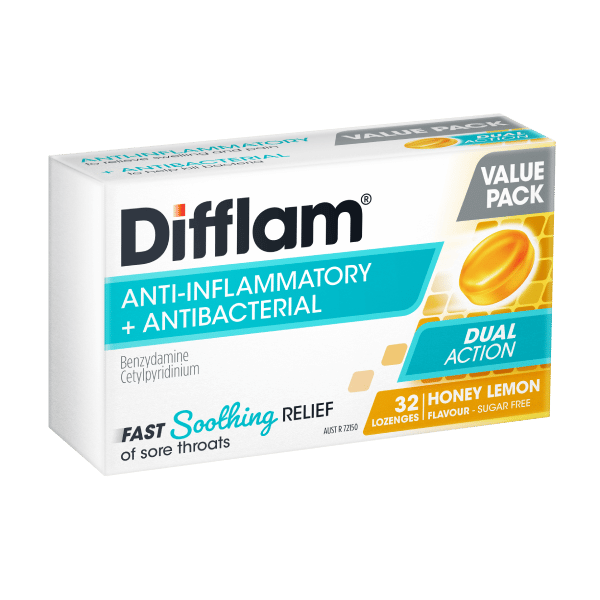 Difflam Sore Throat Lozenges Antibacterial & Anti-Inflammatory Honey & Lemon 32 Pack