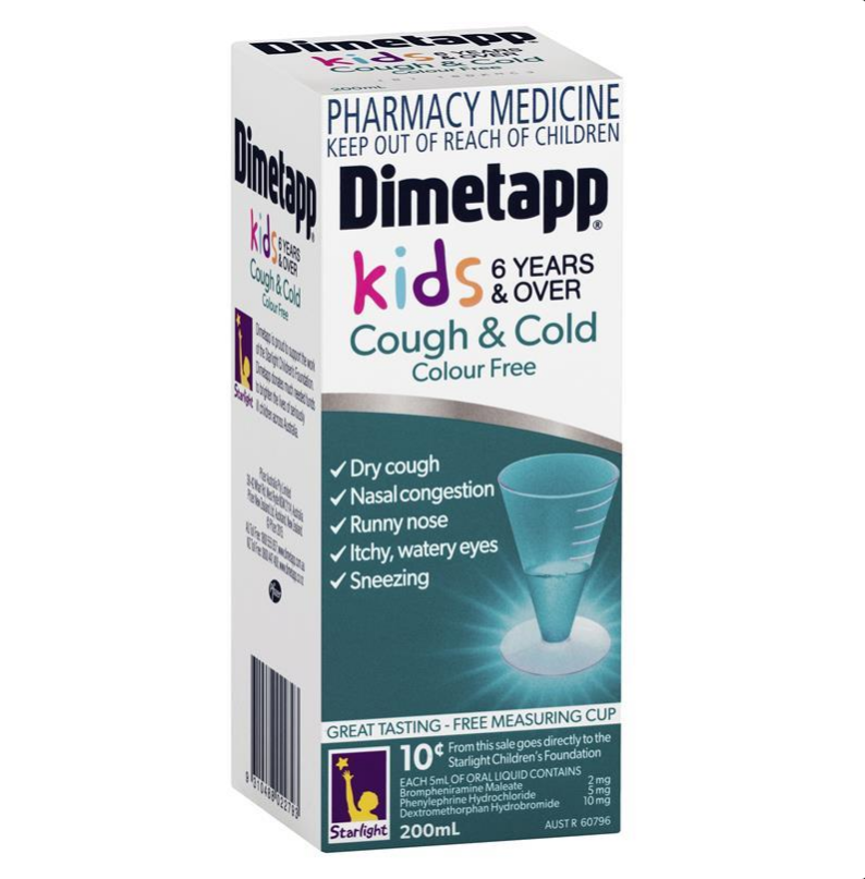 Dimetapp Kids 6 Years & Over Cough and Cold Colour Free 200mL (Limit ONE per Order)