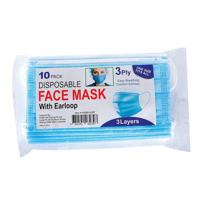 Face Mask - Disposable Face Masks 3 Ply 10 Pack