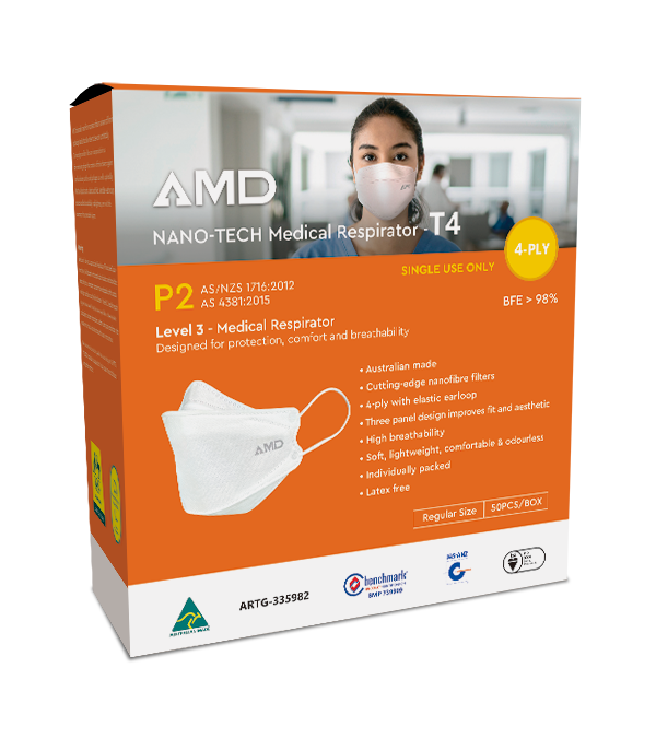 Face Mask - NANO-TECH Particulate Respirator - T4 Level 3 Medical Respirator with Four Layers 50 Pack