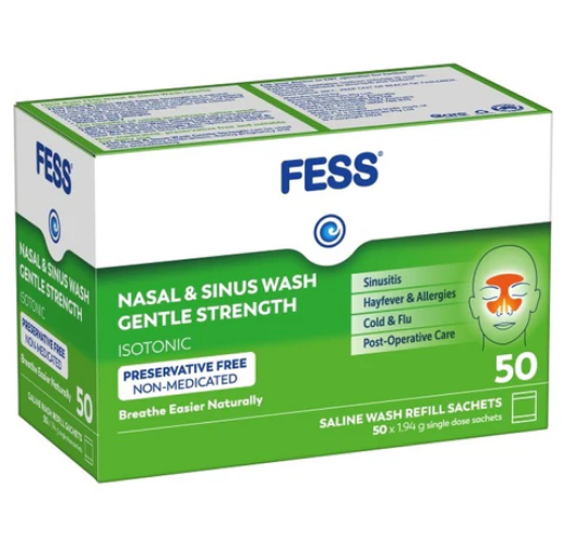 Fess Nasal & Sinus Wash Refill Gentle Strength Wash Sachets Refills 50 Packs