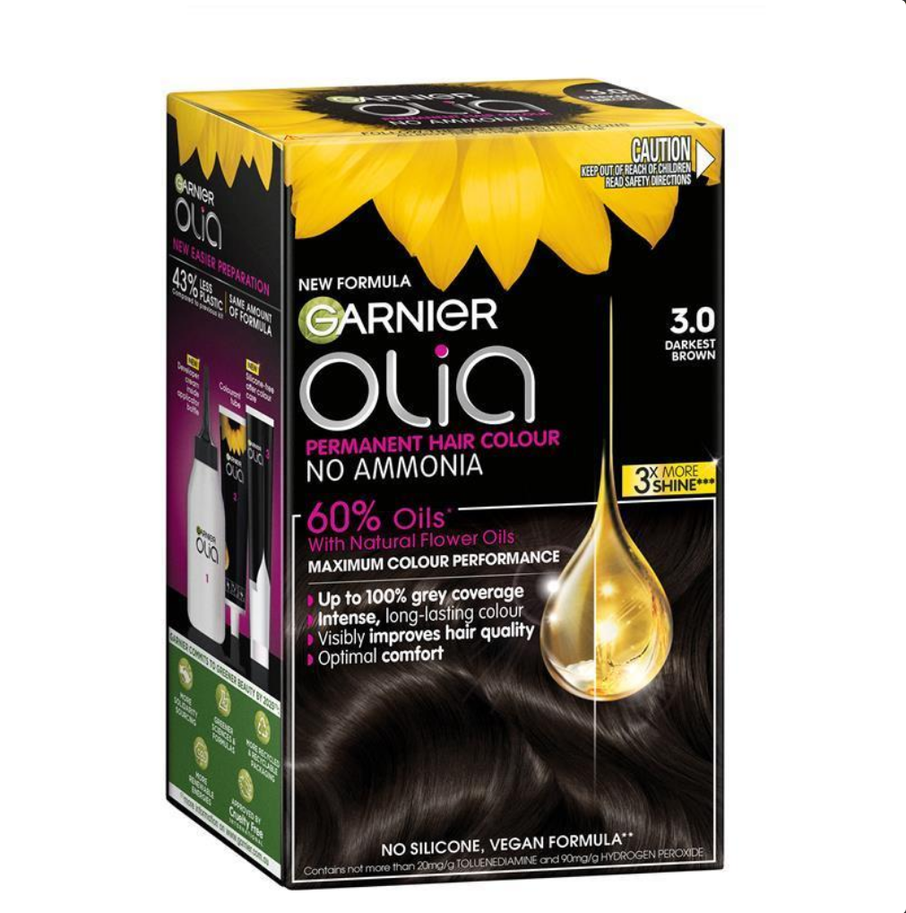 Garnier Olia 3.0 Darkest Brown Permanent Hair Colour No Ammonia 60% Oils