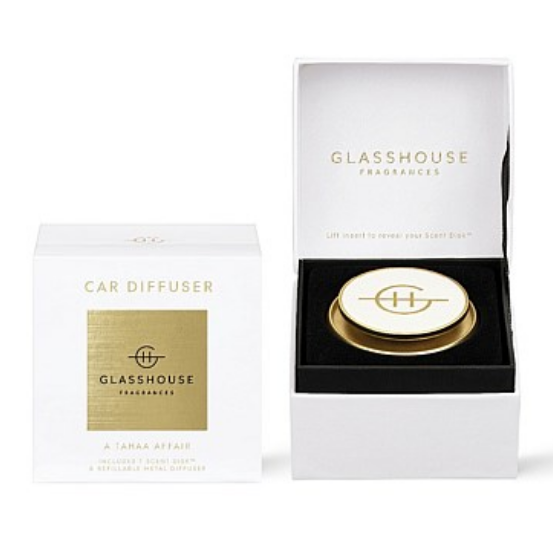 GlassHouse Fragrances A Tahaa Affair Fragrance Gold Car Diffuser with 1 Replacement Scent Disk