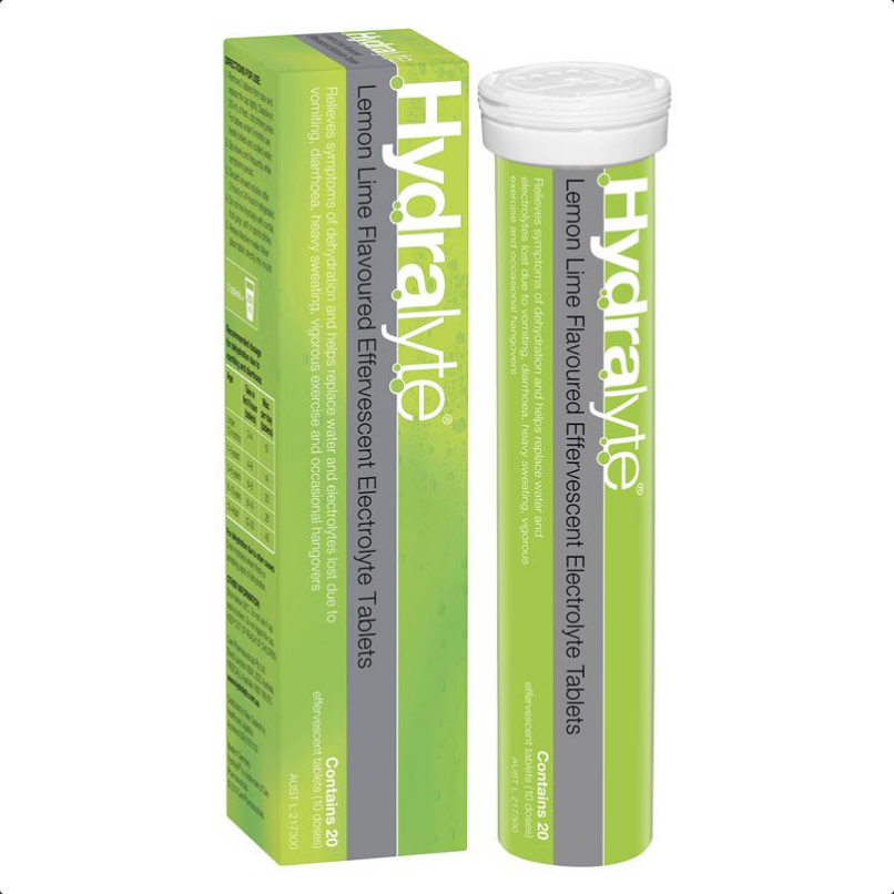 Hydralyte Effervescent Lemon Lime Electolyte Tablets 20 Pack