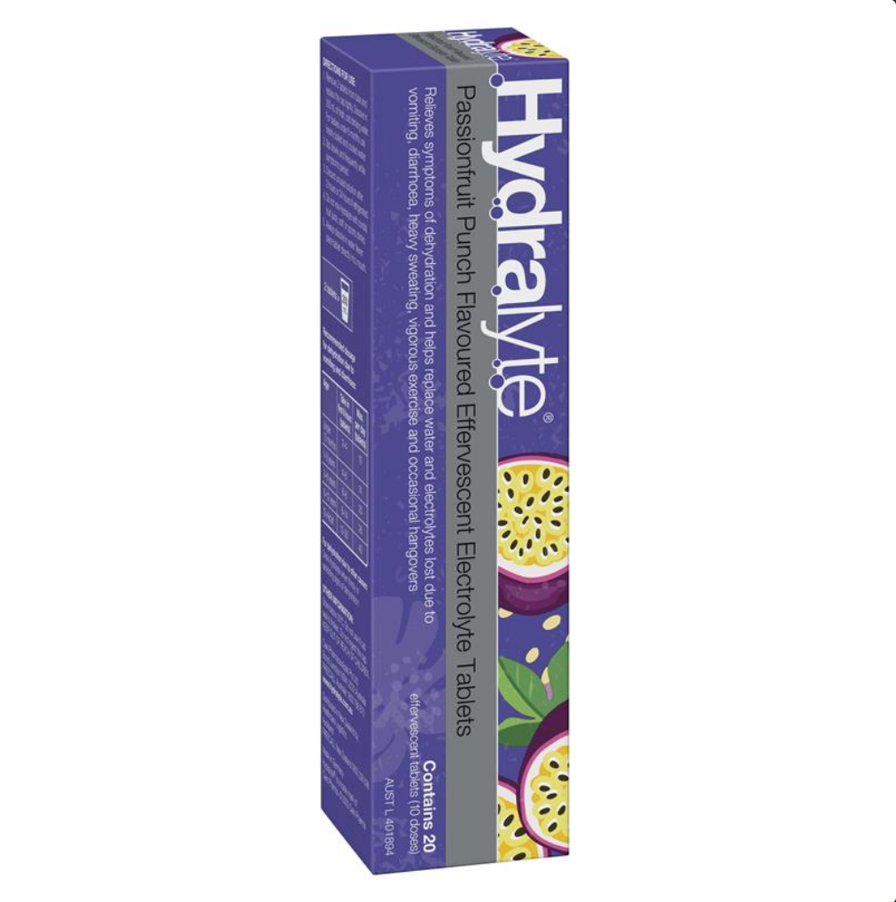 Hydralyte Electrolyte Effervescent Passionfruit Punch 20 Tablets