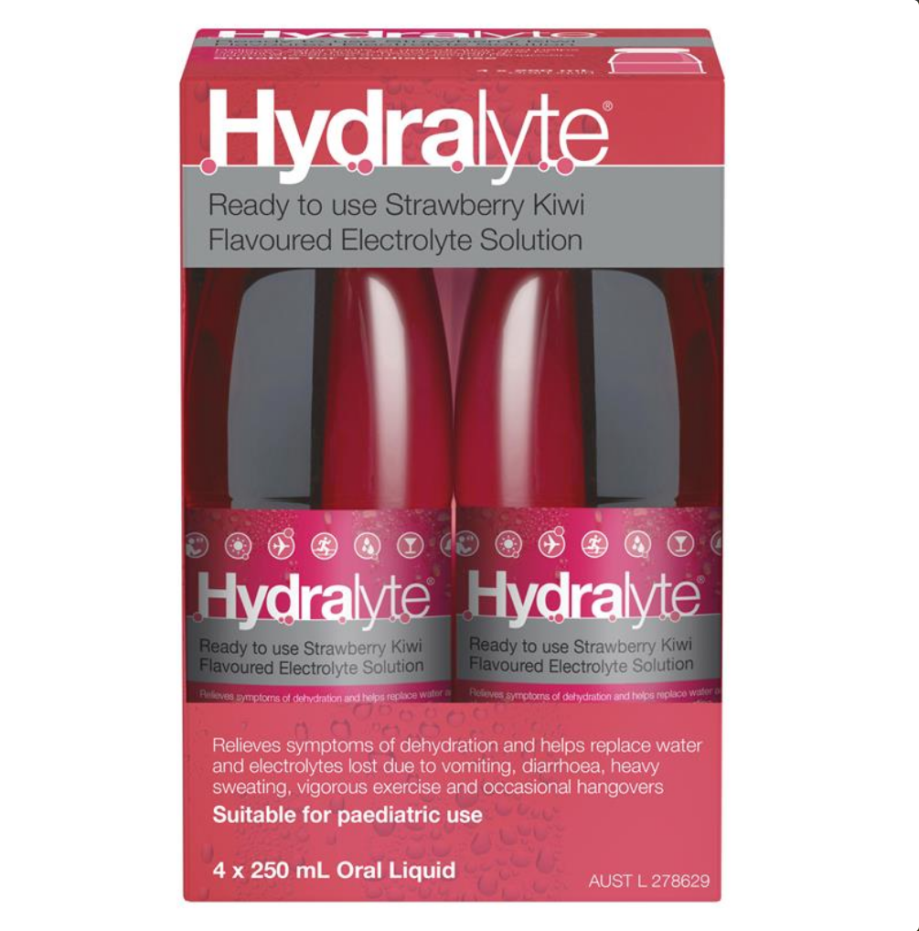Hydralyte Electrolyte Strawberry and Kiwi Solution 4 x 250mL