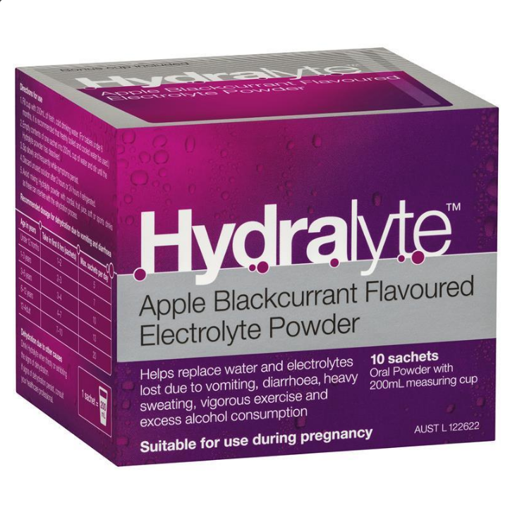 Hydralyte Apple Blackcurrant Flavoured Electrolyte Powder 10 Pack