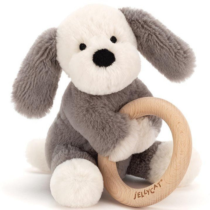 Jellycat Shooshu Puppy Wooden Ring Toy