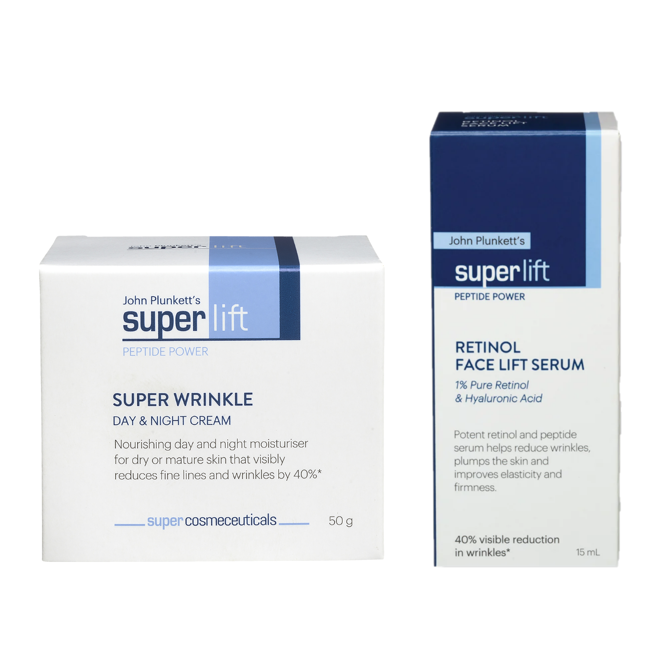 John Plunkett's SuperLift Super Wrinkle Day & Night Cream 50g + Retinol Face Lift Serum 15mL - Special Bundle