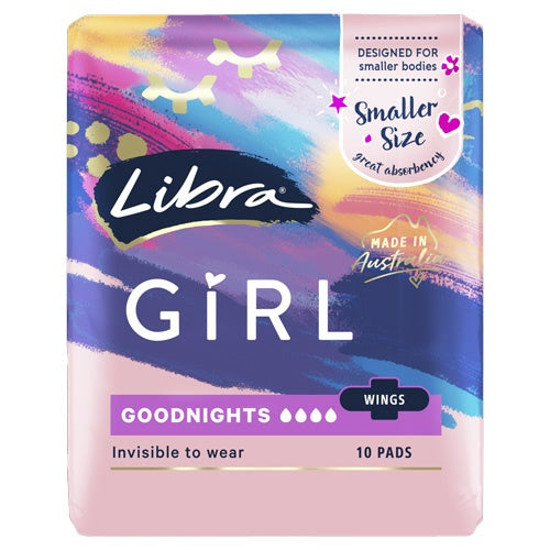Libra Girl Goodnight Pads with Wings 10 Pack