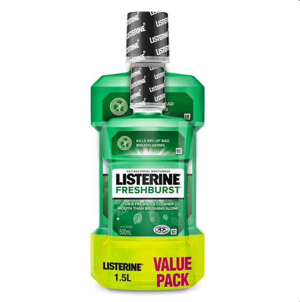 Listerine Fresh Burst Mouthwash 1 Litre + 500mL Value Pack