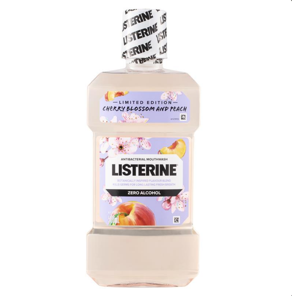 Listerine Zero Alcohol Antibacterial Mouthwash Limited Edition Cherry Blossom and Peach 500mL