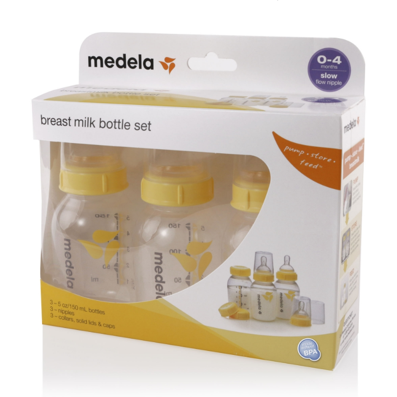 Medela Breastmilk Bottle 150ml with Wide Base - Slow Flow Teat 3pk