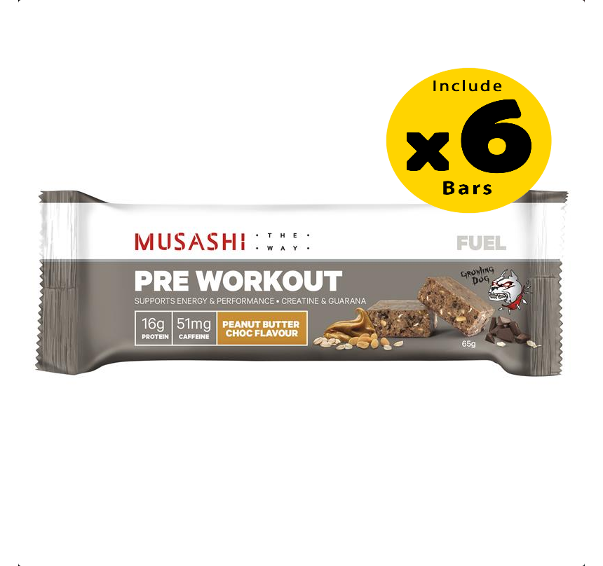 Musashi Fuel Pre Workout Bar Peanut Butter 6 x 65g - Pack of 6