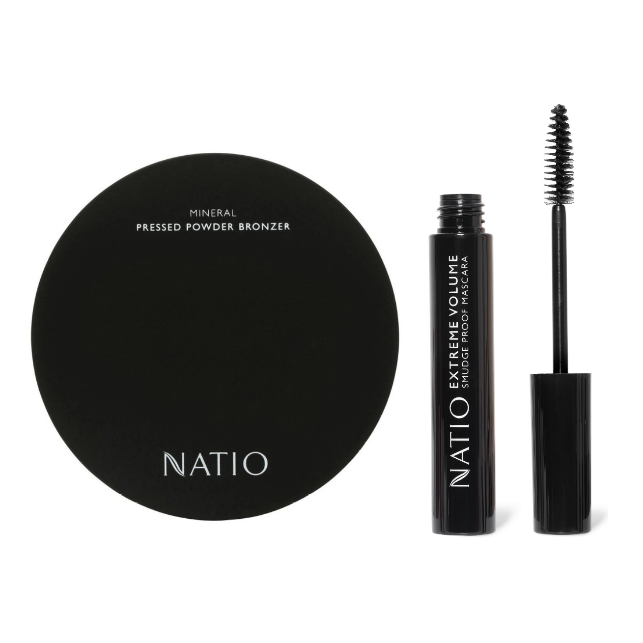 Natio Extreme Volume Smudge Proof Mascara Black + Mineral Pressed Powder Bronzer 18.1g - Special Bundle