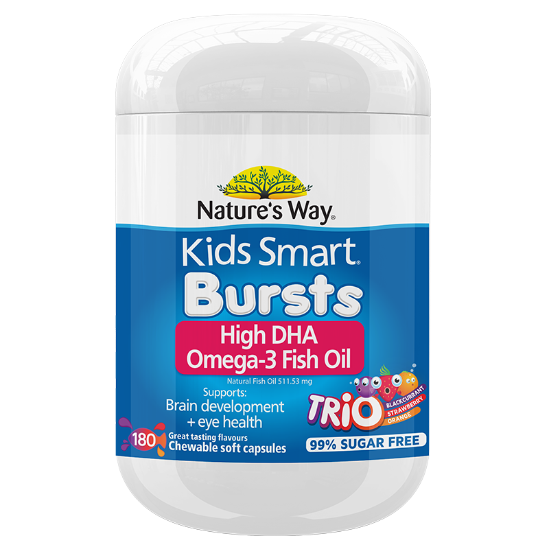 Nature's Way Kids Smart Bursts High DHA Omega-3 Fish Oil Trio 180 Chewable Capsules