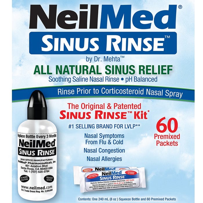 NeilMed Sinus Rinse Kit (Squeeze Bottle + Premixed Sachets x 60)