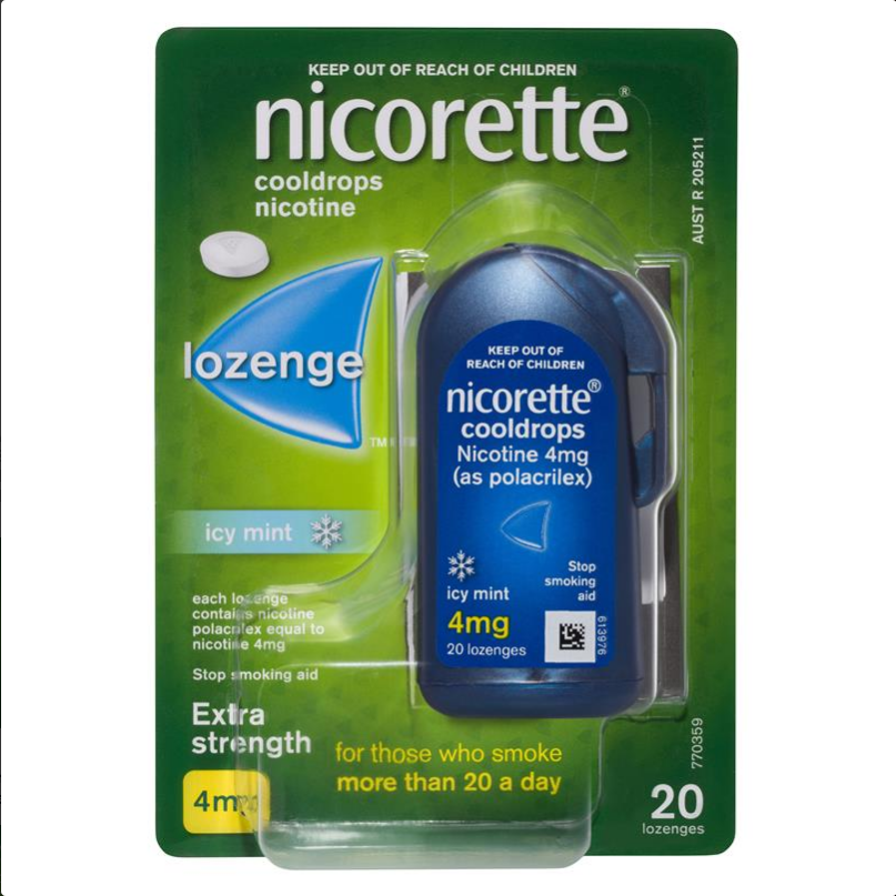 Nicorette Quit Smoking Cooldrops Lozenges Extra Strength Icy Mint 4mg 20 Pieces