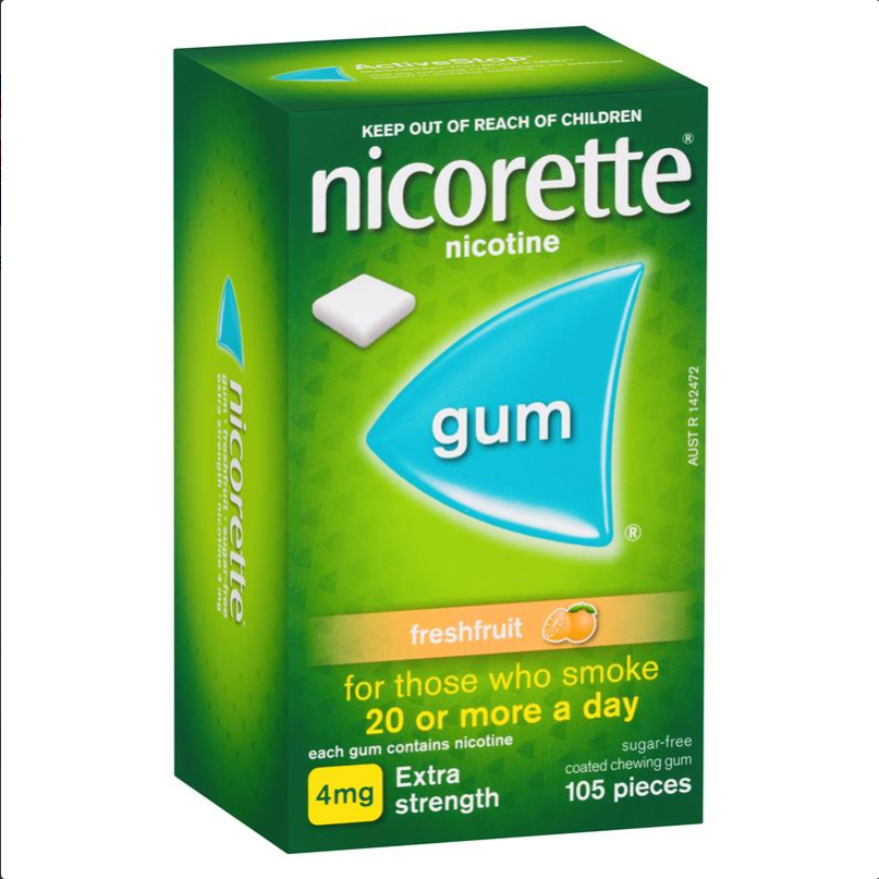 Nicorette Quit Smoking Extra Strength Fresh Fruit Chewing Gum 4mg 105 Pieces