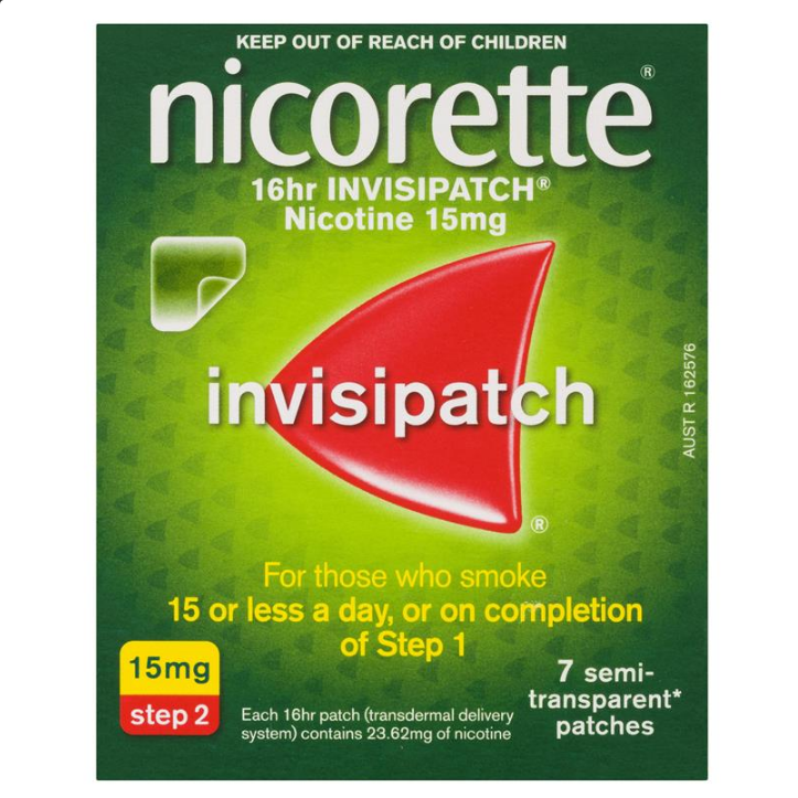 Nicorette Quit Smoking 16hr InvisiPatch Step 2 15mg 7 Semi-Transparent Patches