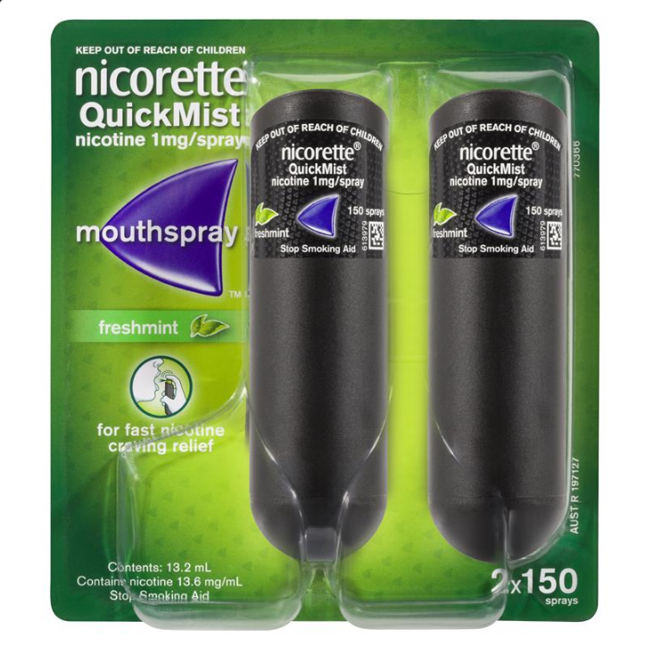 Nicorette Quit Smoking QuickMist Mouth Spray Freshmint Duo 150 Sprays (13.2mL x 2)