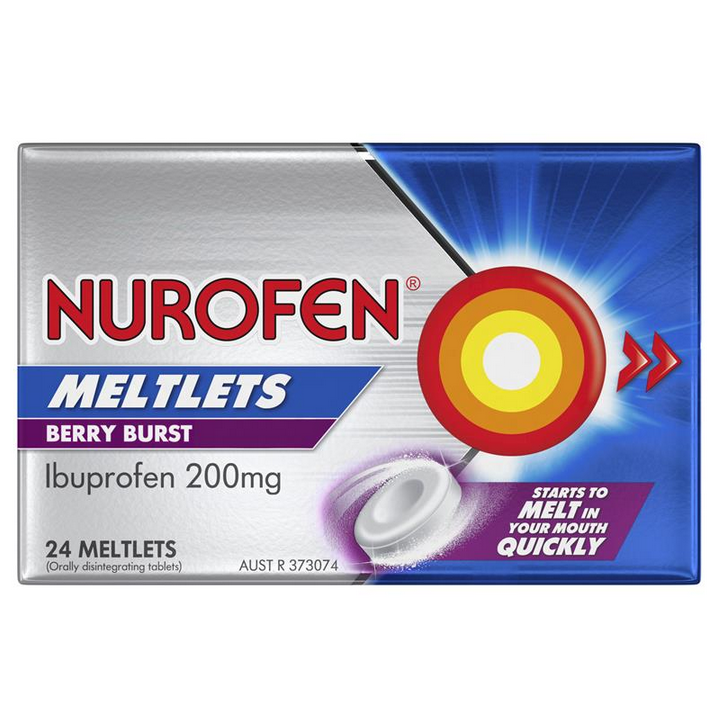 Nurofen Meltlets Pain Relief Berry Burst 200mg Ibuprofen 24 Pack