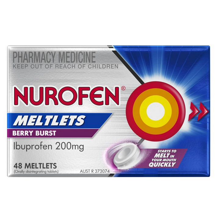 Nurofen Meltlets Pain Relief Berry Burst 200mg Ibuprofen 48 Pack (Limit of ONE per Order)