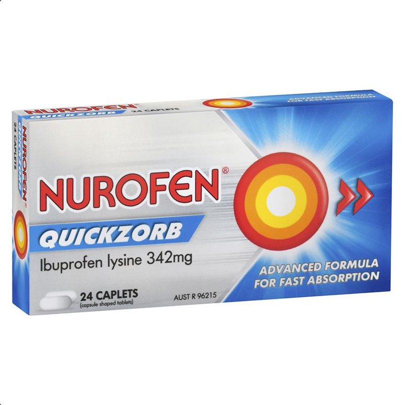 Nurofen Quickzorb Ibuprofen Lysine 342mg Pain Relief 24 Caplets