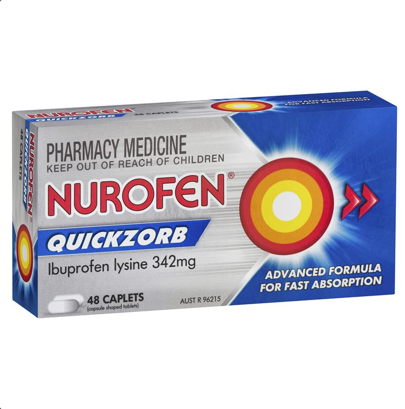 Nurofen Quickzorb Ibuprofen Lysine 342mg Pain Relief 48 Caplets (Limit ONE per Order)