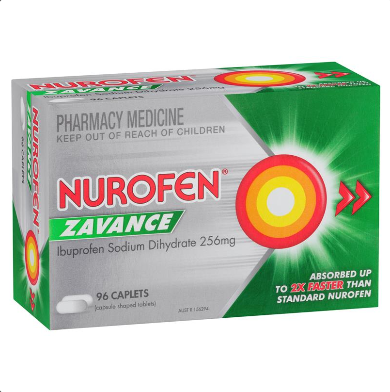 Nurofen Zavance Ibuprofen 256mg Fast Pain Relief 96 Caplets (Limit ONE per Order)