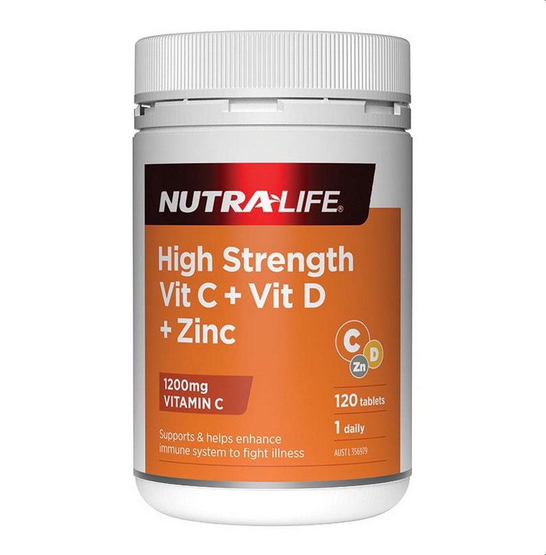 Nutra-Life High Strength Vitamin C 1200mg + D + Zinc 120 Tablets