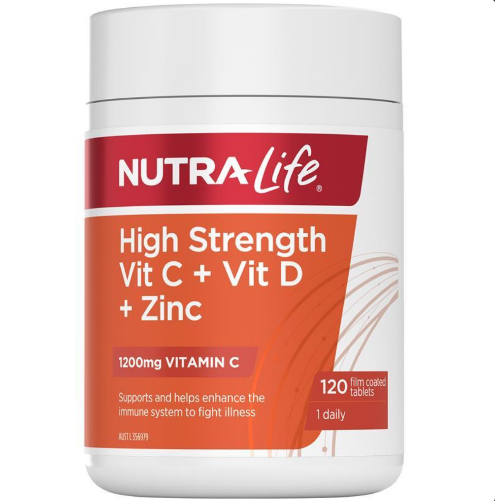 Nutra-Life High Strength Vitamin C + Vitamin D + Zinc 120 Tablets