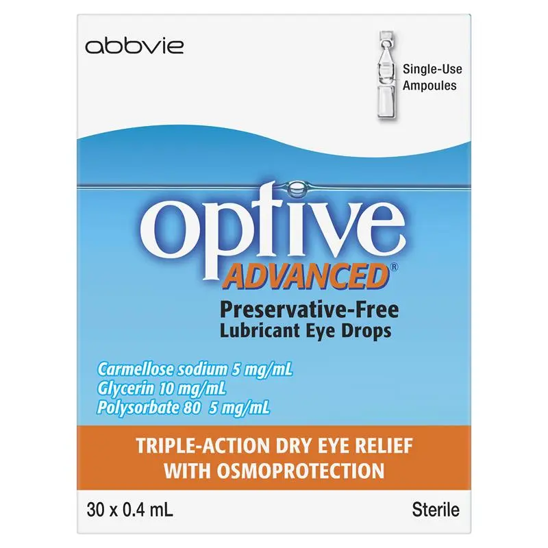 Optive Advanced Lubricant Eye Drops 0.4ml x 30 Single Use Vials