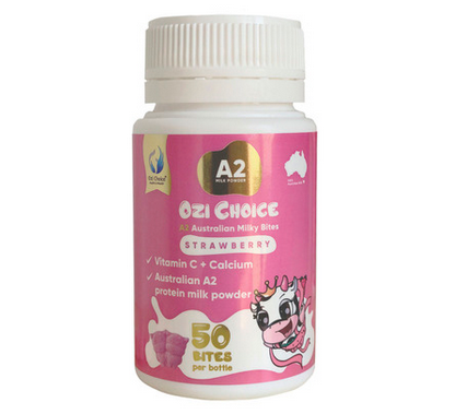 Ozi Choice A2 Australian Milky Bites Calcium + Vitamin C Strawberry Flavour 50 Bites