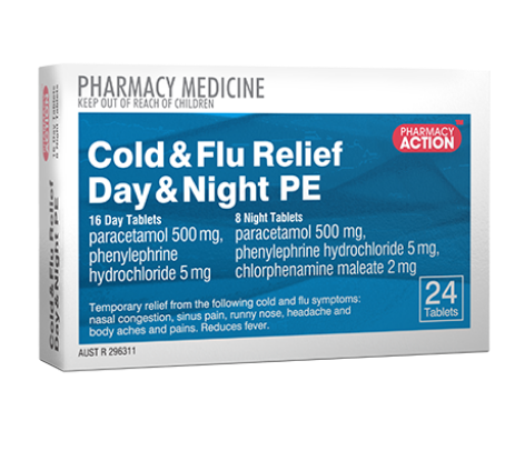 Pharmacy Action Cold & Flu Relief Day & Night PE 24 Tablets (Limit ONE per Order)